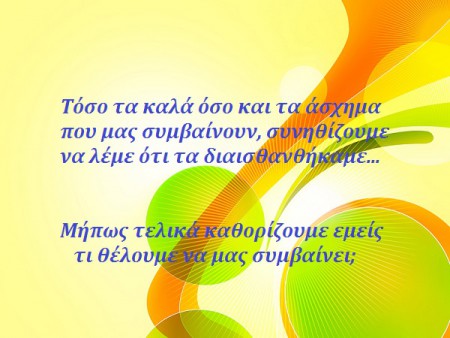 Τη ζωή μας την καθορίζουμε εμείς!